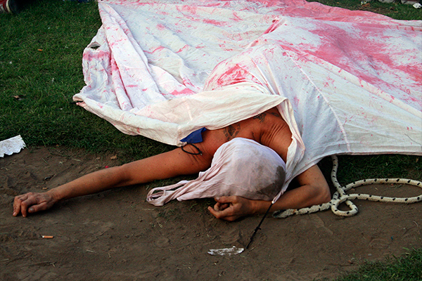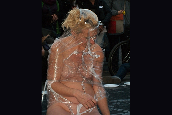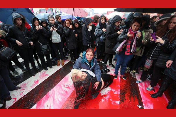 BAJO LA LLUVIA ROJA.. INTERVENCION CALLEJERA